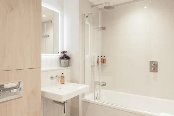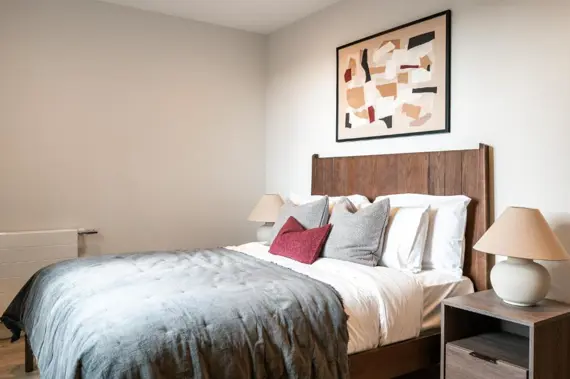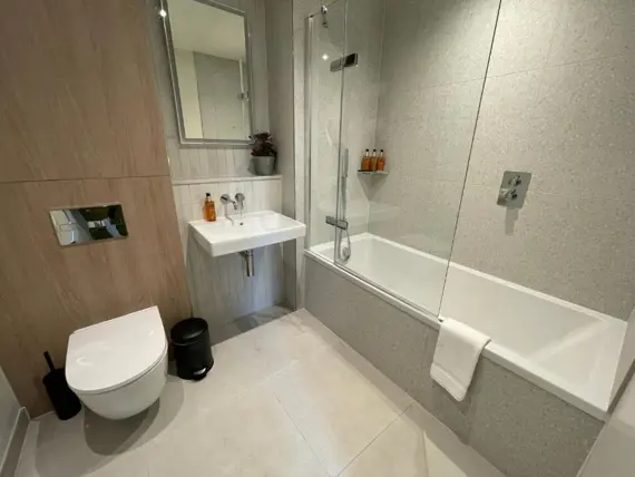 The one-bedroom apartments offer comfortable, practical living with generous storage - ideal for solo travellers or couples. The two-bedroom apartment includes floor-to-ceiling windows, an ensuite bathroom and a private balcony - perfect for those wanting a little extra space. Each premium serviced apartment at Bermondsey apartments are thoughtfully designed with comfort and style in mind. Enjoy a fully-equipped kitchen stocked with pantry essentials, fast free Wi-Fi and secure, self-check-in.