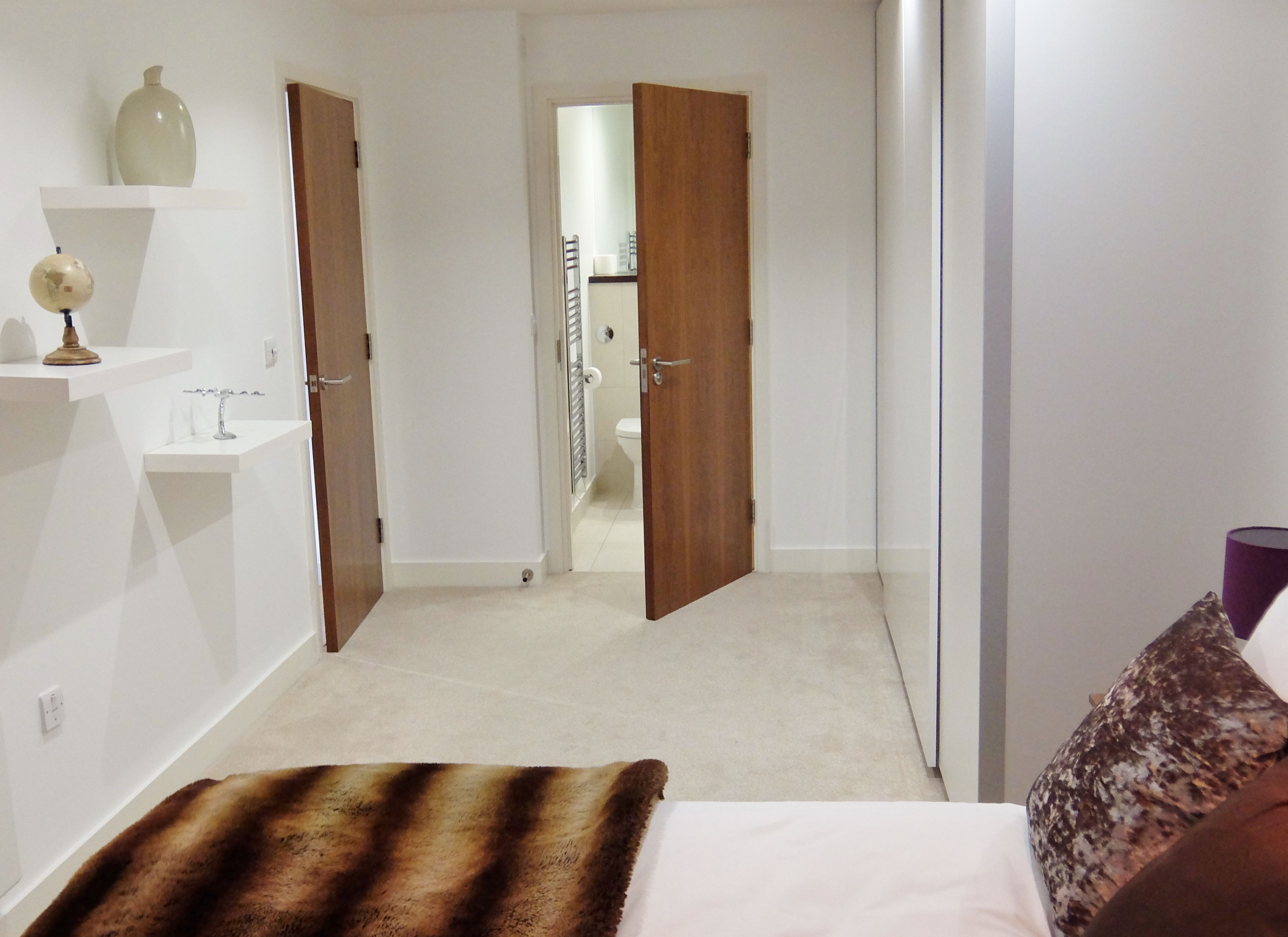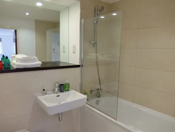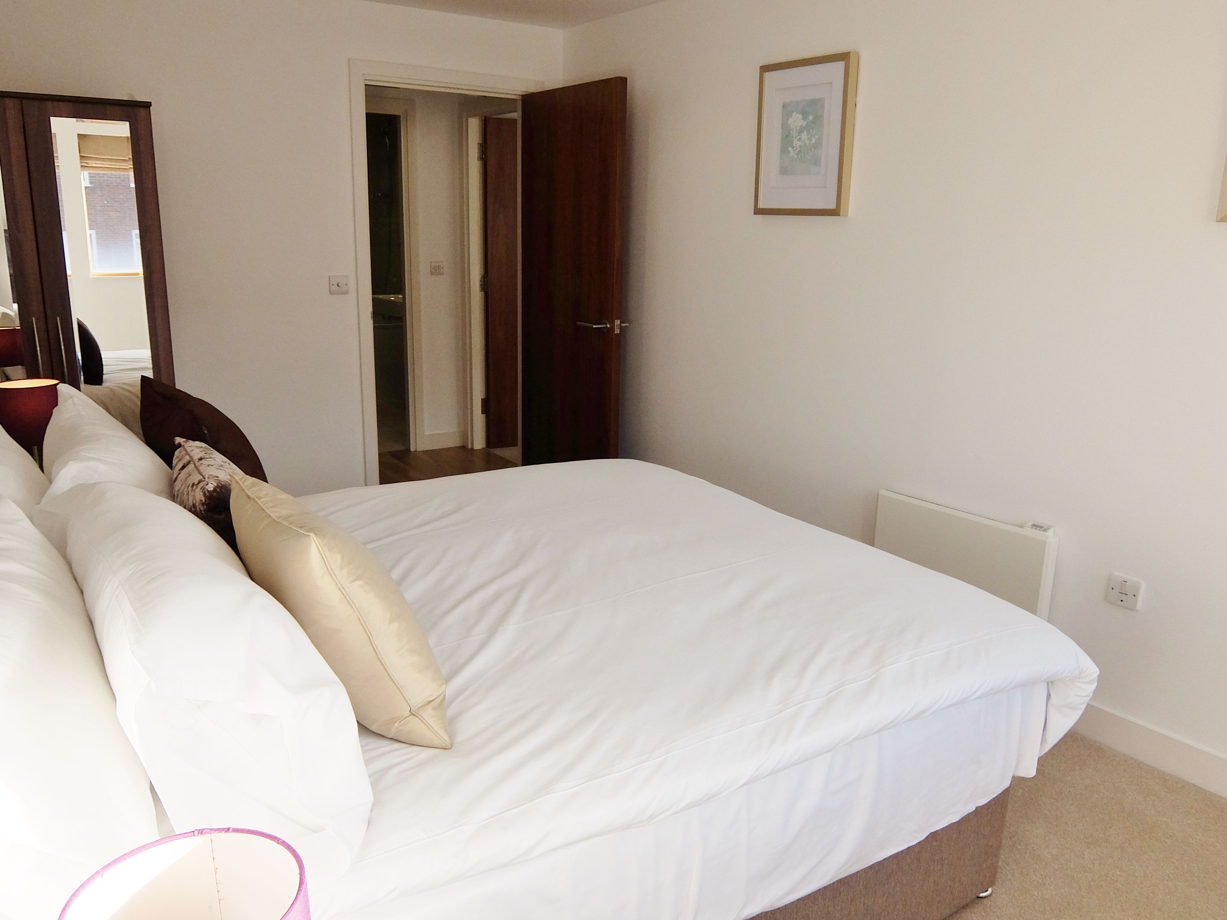 Both bathrooms are equipped with a shower over the bath and a heated towel rail. The master bedroom features a king-sized bed, while the second and third bedrooms offer zip and link beds that can be configured as either a king or two singles. Each bedroom is furnished with bedside tables, reading lamps, and spacious wardrobes or closets.