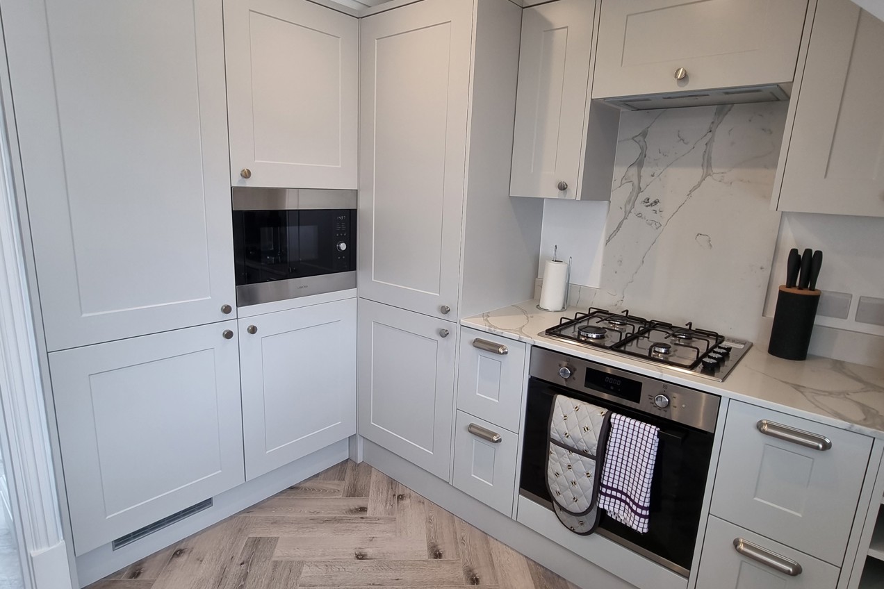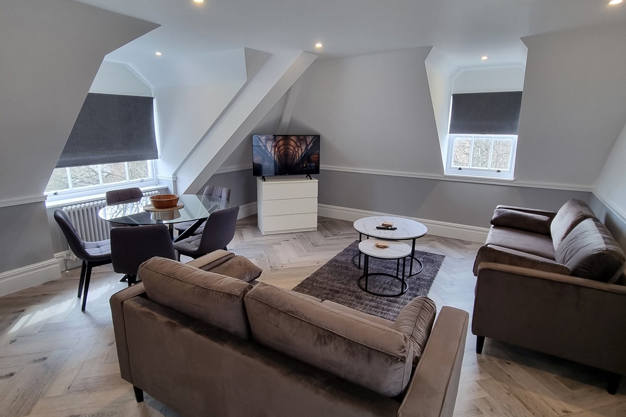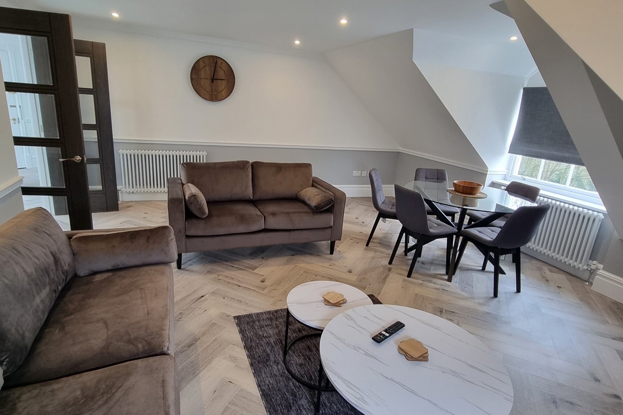 Harrow Mount Apartments boast a unique character while incorporating modern conveniences such as gas central heating and a security entry phone with CCTV system. The layout includes a generous living and dining area, a master bedroom with an en-suite bathroom, an additional bedroom, and a separate kitchen, all adorned with excellent decor.