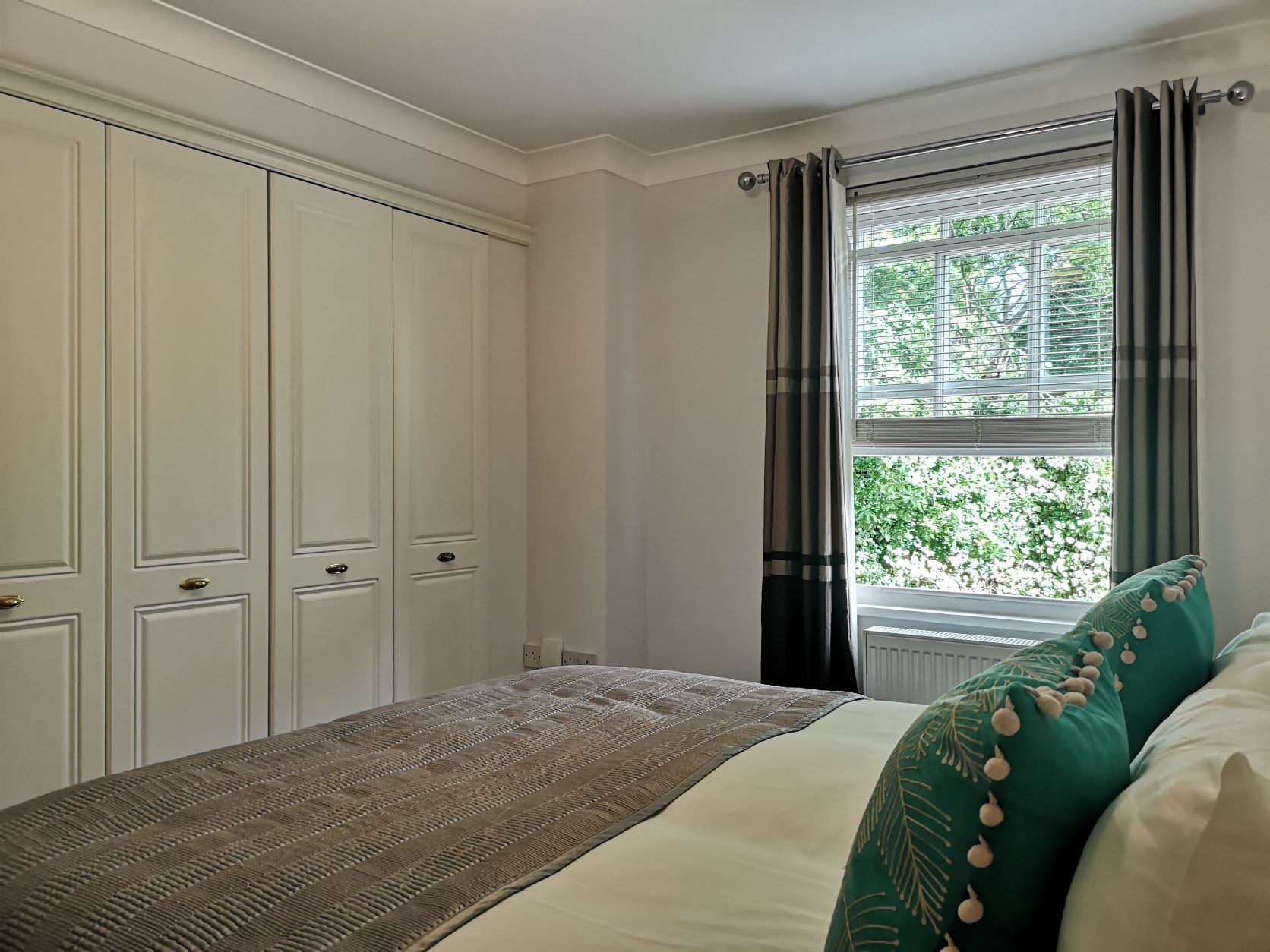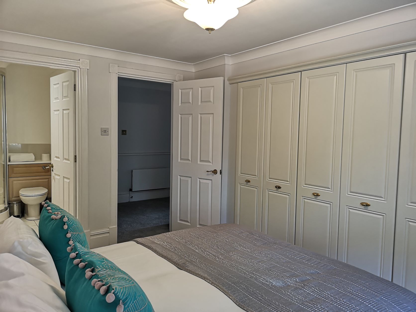 The two-bedroom apartment spans 79 sqm (850 square feet), while the three-bedroom option offers 93 sqm (1001 square feet). The master bedrooms are generously sized, complete with large built-in wardrobes and en-suite bathrooms. The second bedroom features a zip-and-link bed, allowing it to be configured as either a master or two twin beds. Additional highlights include twin bedside tables, reading lamps, and a free-standing wardrobe in the second bedroom.