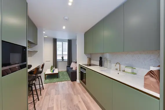 A selection of modern studio and one bedroom apartments set above restaurants and cafes just off of Oxford Street. The apartments all feature fully fitted kitchens with washer dryer and microwave and the living rooms have multi-channel TV with DVD players.