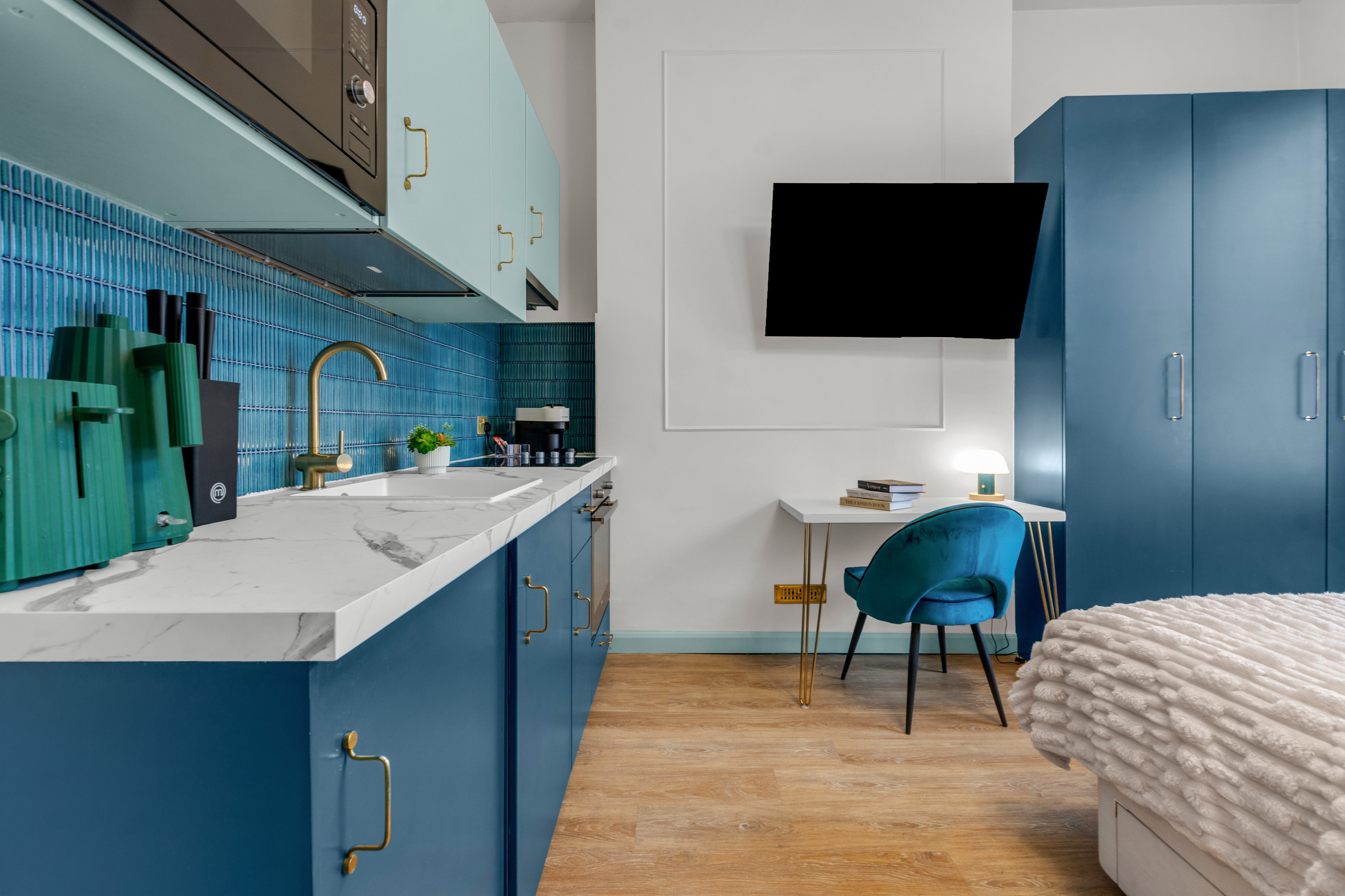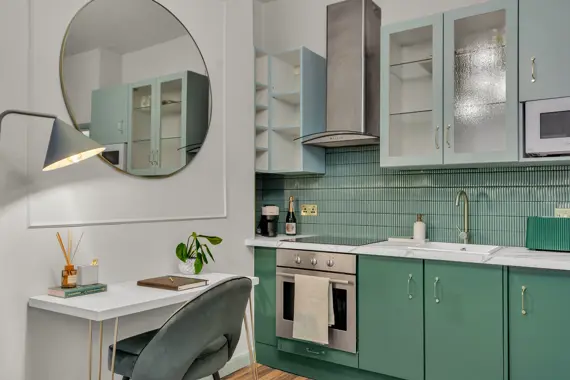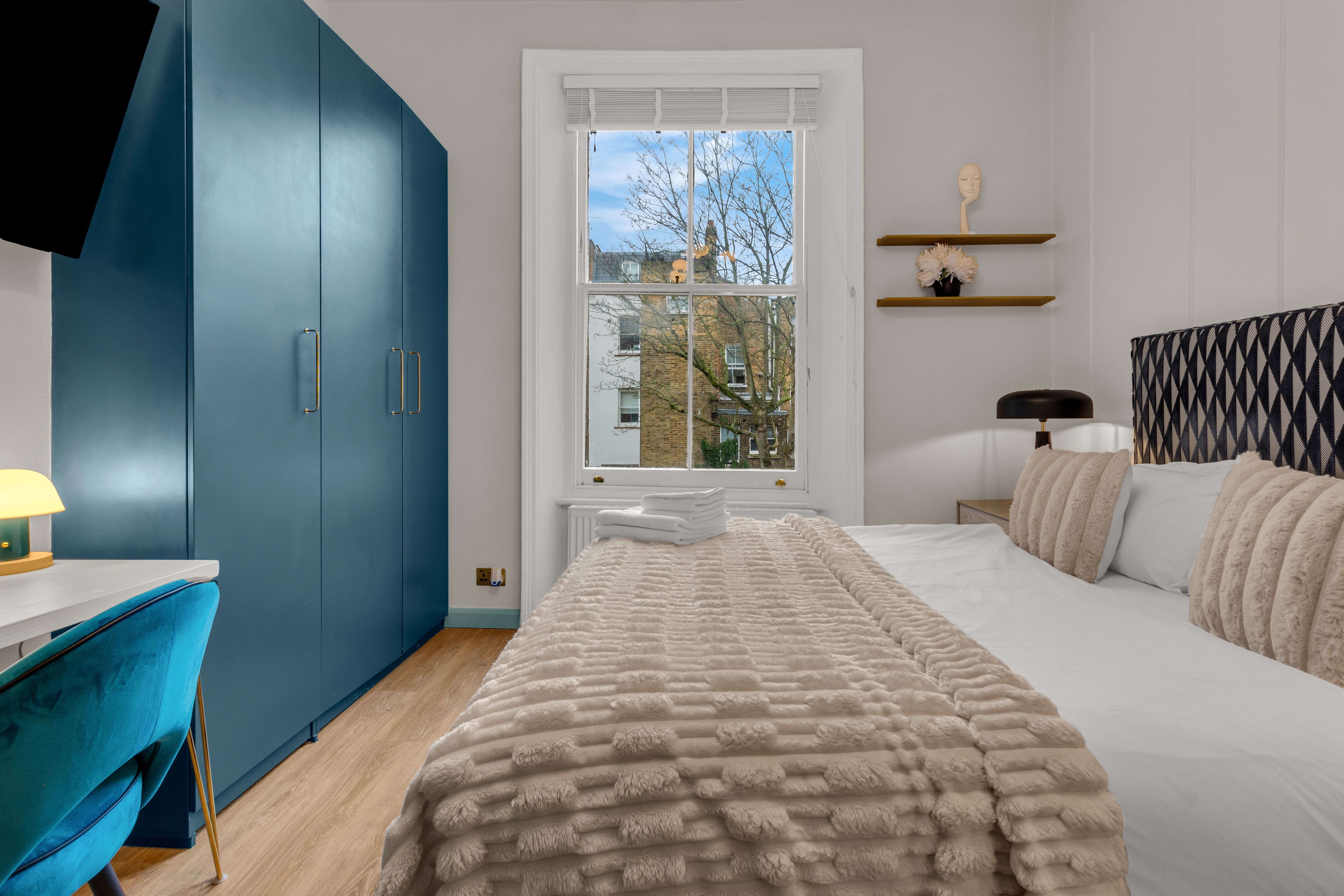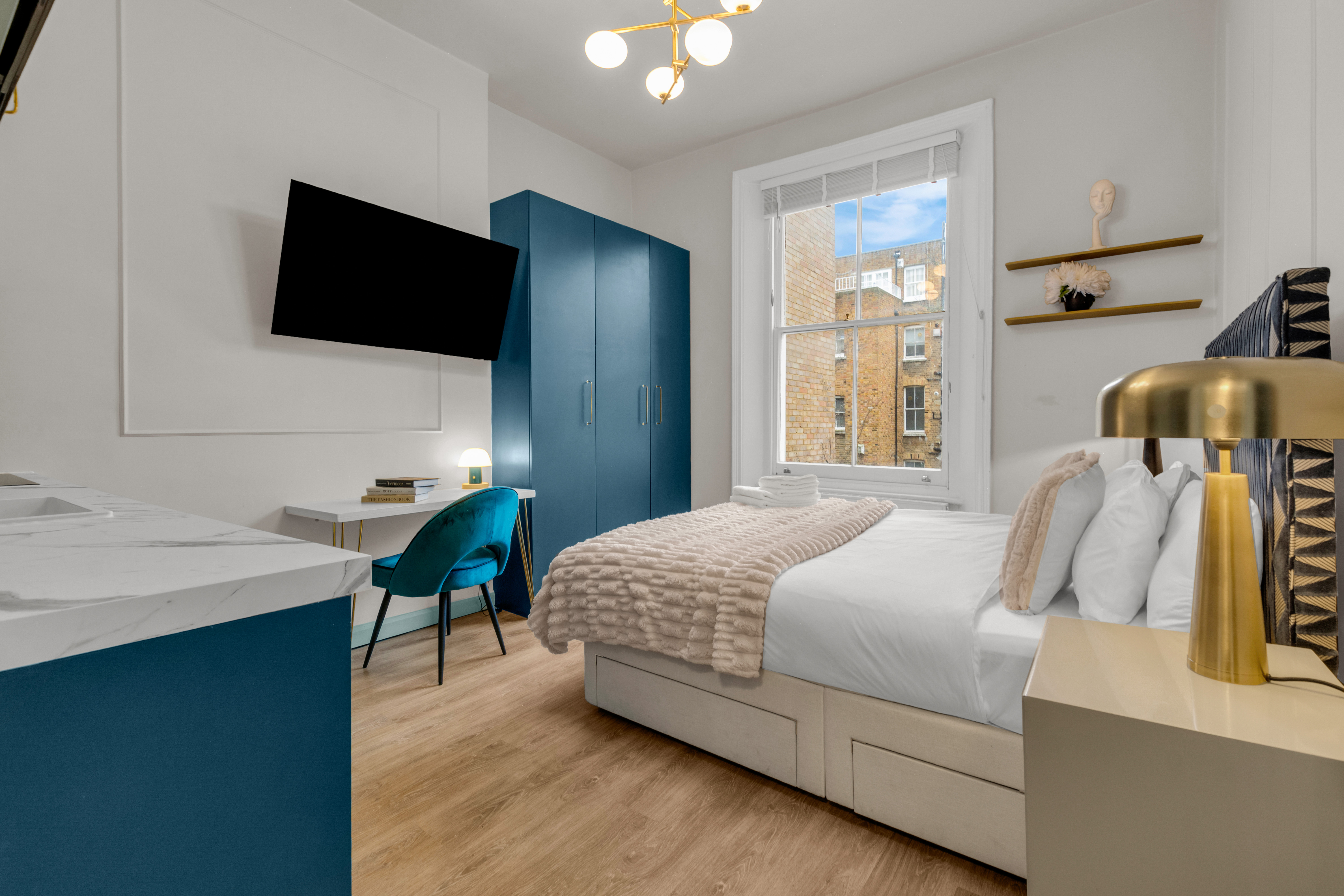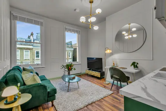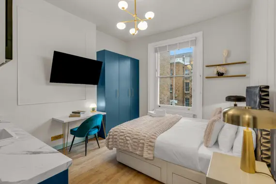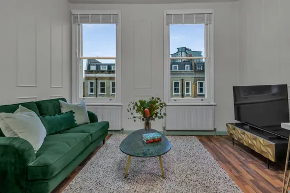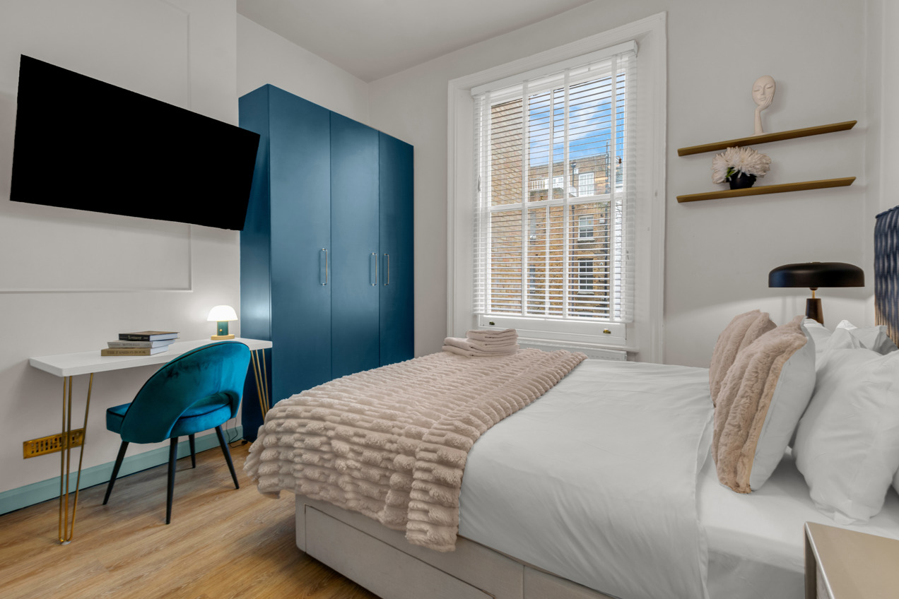 Experience the charm of Kensington, one of London’s most esteemed neighborhoods. This elegant, pet-friendly apartment seamlessly combines striking décor, expansive windows, and breathtaking views with unparalleled comfort. Enjoy high-speed Wi-Fi, a widescreen TV featuring Netflix, and a dedicated workspace ideal for remote work. With weekly housekeeping included, maintaining a tidy environment is effortless. This apartment is perfect for anyone seeking a well-connected, thoughtfully designed home in the vibrant heart of the city. Secure your stay in this premium serviced apartment today, and explore additional exceptional corporate apartments throughout London.