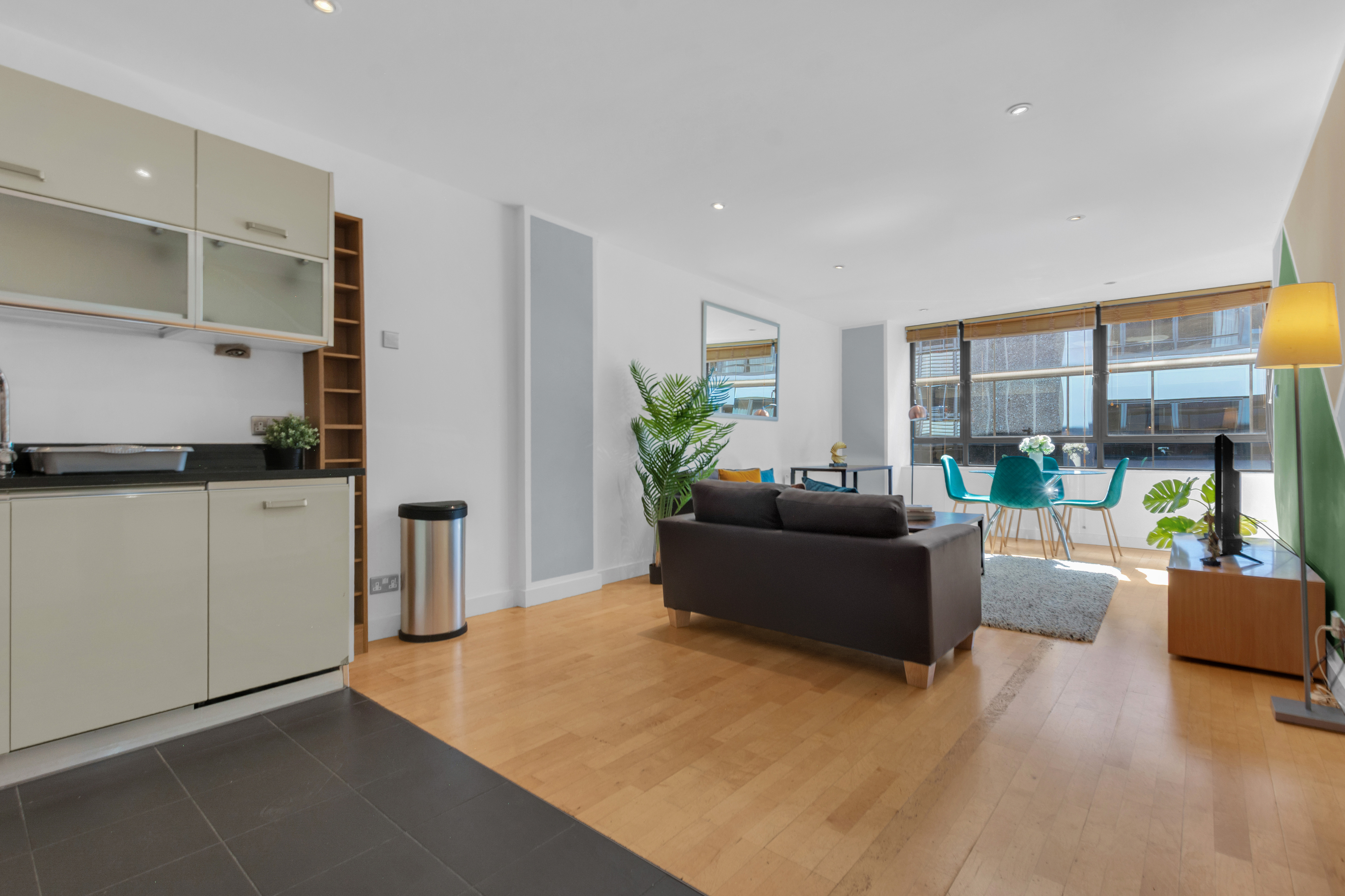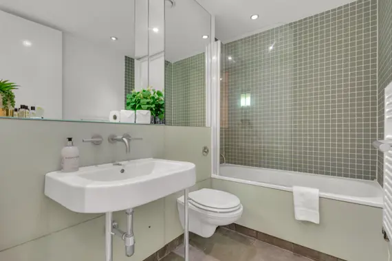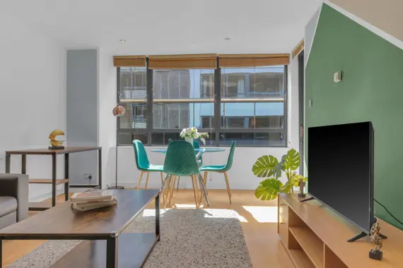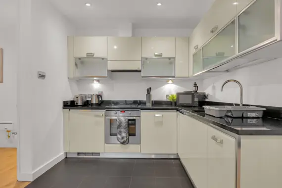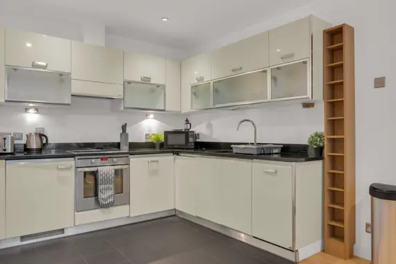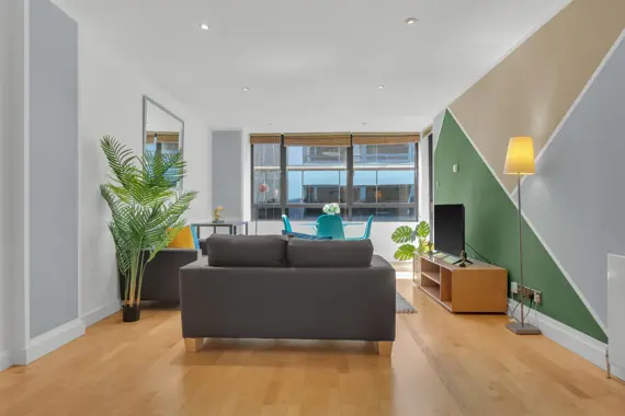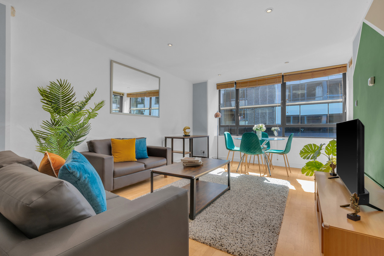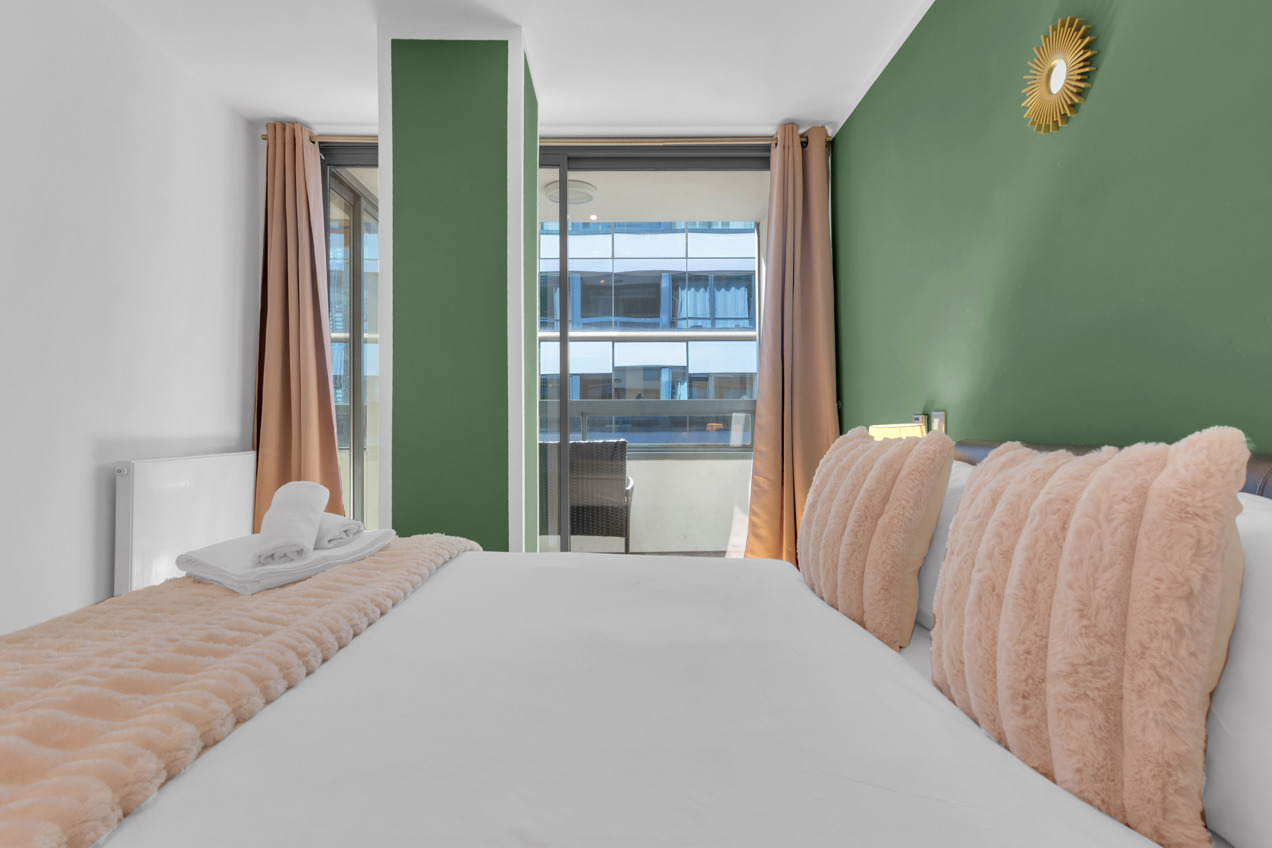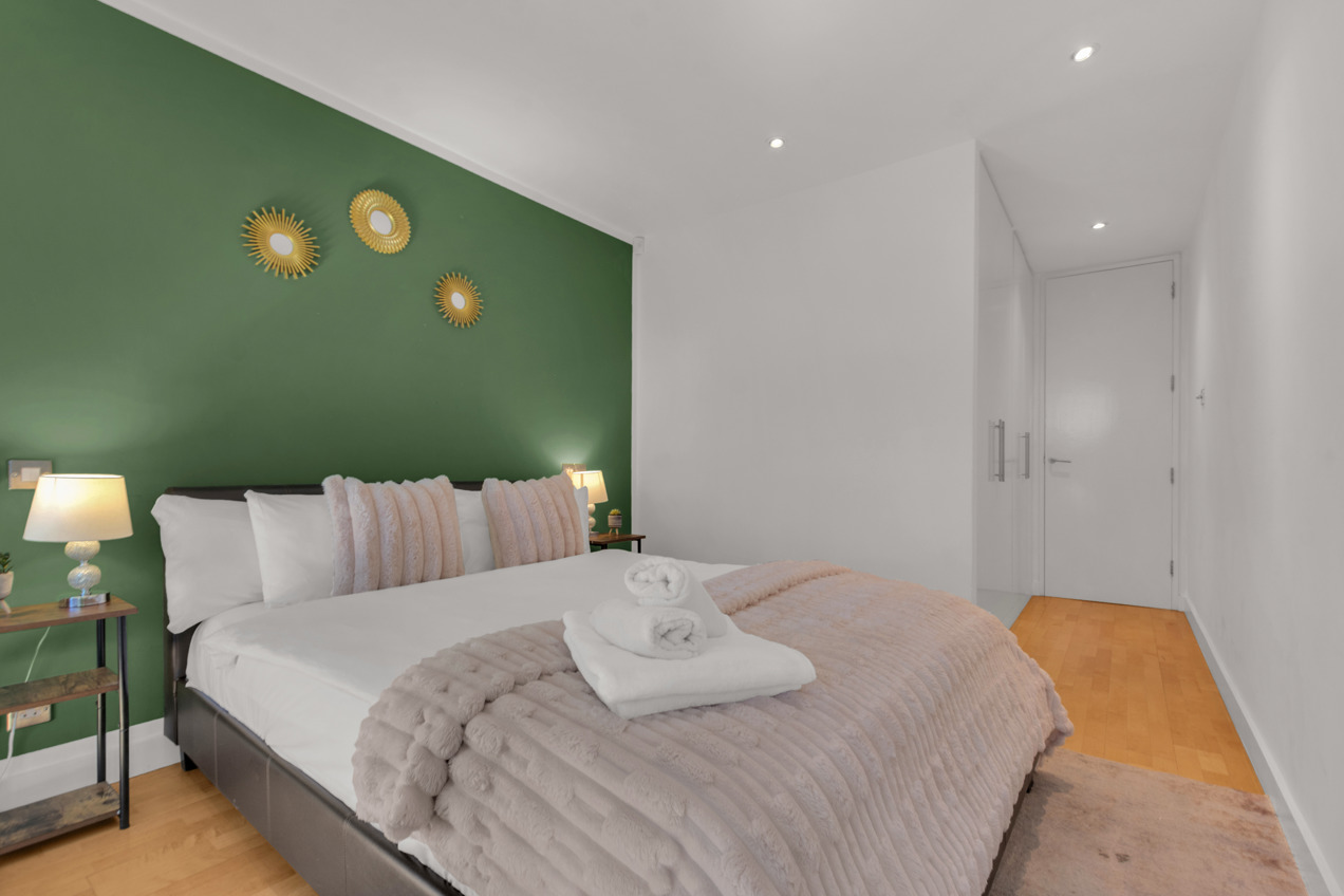Explore exceptional two-bedroom modern apartments at Friends Street, Islington, conveniently located just a six-minute stroll from Angel Tube (Northern Line) and Barbican. The open-plan lounge features elegant wood flooring and expansive floor-to-ceiling windows, while both bedrooms are comfortably carpeted. Enjoy cooking in the fully equipped kitchen, complete with a dishwasher, and unwind on your private balcony. Additional amenities include an in-unit washer/dryer, high-speed Wi-Fi, a flat-screen TV, parking options, concierge service, and express check-in/out. This residence is perfect for tech-savvy professionals and business travelers alike.