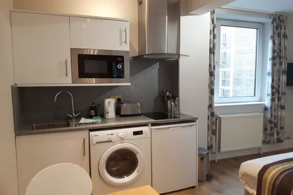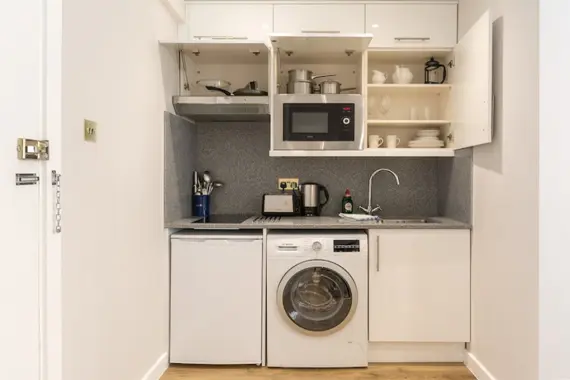 Each apartment at Chelsea Cloisters is individually designed, with a fully equipped kitchenette, including a combination microwave/oven grill, a hob, refrigerator and washer/dryer. Satellite TV is included in all apartments, along with modern bathrooms. Some 1 Bed & 2 Bed apartments also feature separate, spacious living and dining areas with comfortable sofas. Daily maid service & weekly linen and towel change are also provided.