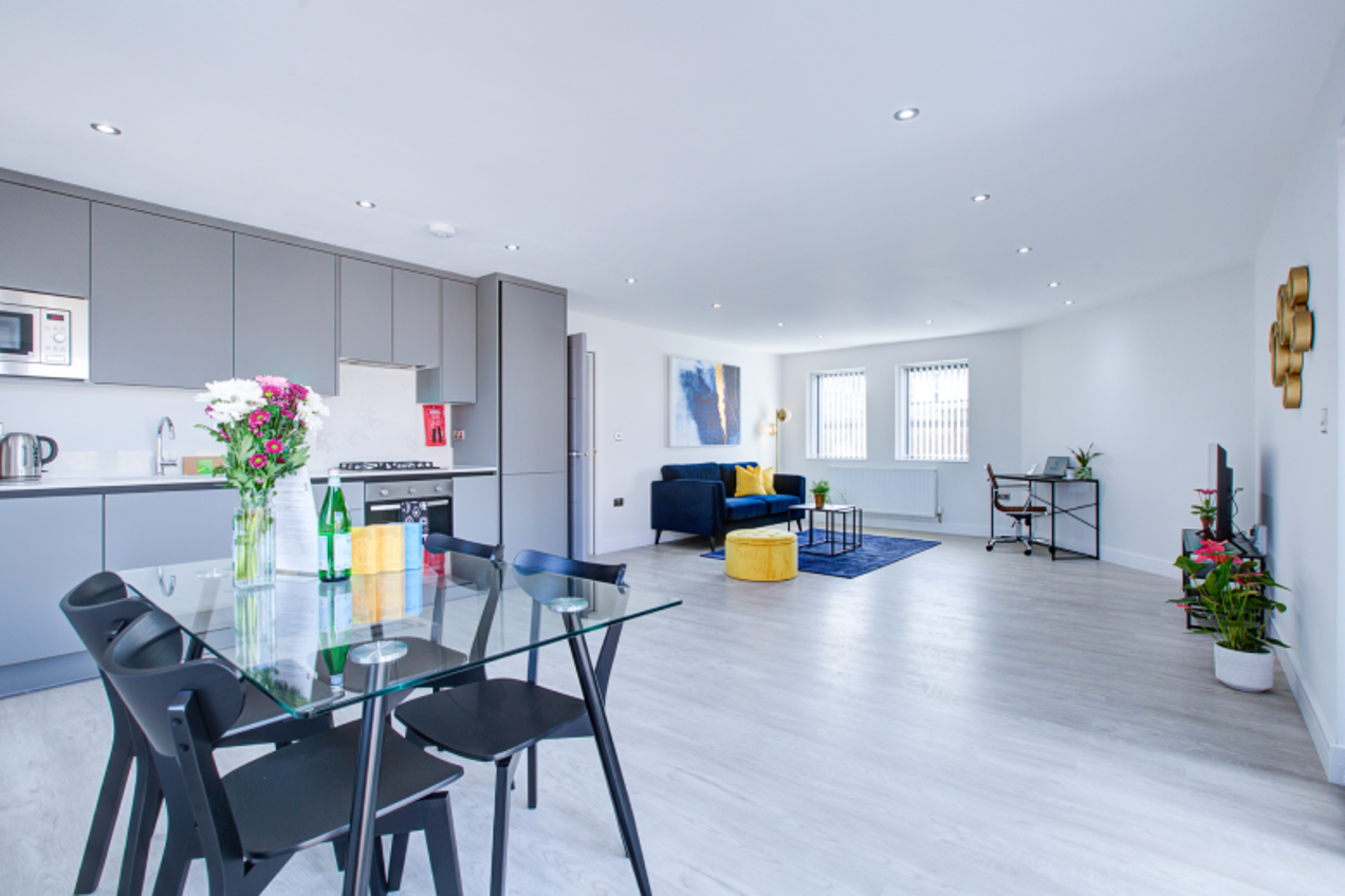 The apartments boast direct travel to King's Cross in 50 minutes and to Baker Street in 30 minutes via the Metropolitan Line. Conveniently located just a 5-minute walk from Uxbridge underground station and 2 minutes from the High Street, these apartments are situated near major transportation hubs. Uxbridge station serves as the terminus for both the Metropolitan and Piccadilly lines. Additionally, Uxbridge is within 5 minutes of the M40, 10 minutes of the M25, and 15 minutes of the M4 and Heathrow Airport. As corporate serviced apartments, they cater to all your 'Bleisure' needs.