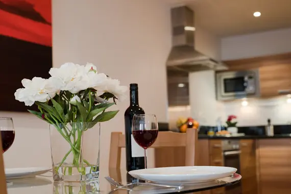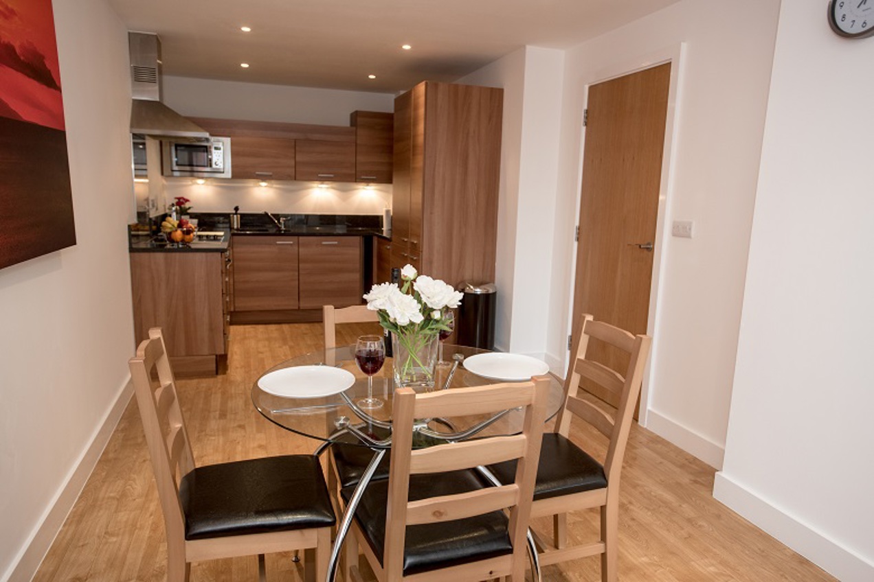 The apartments offer a true home from home experience with a light and spacious open plan lounge / dining area and a fully equipped kitchen